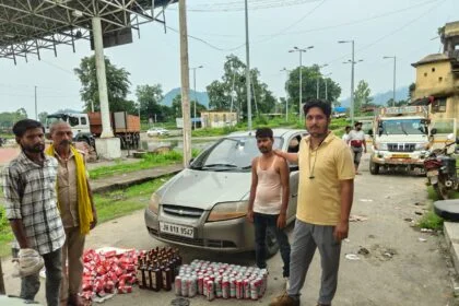 नवादा : उत्पाद विभाग की टीम ने बिहार - झारखंड सीमा पर समेकित जांच केंद्र पर प्रवीण कुमार अवर निरीक्षक