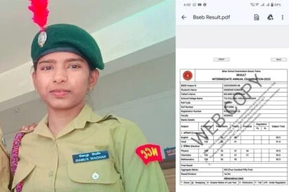 नवादा : हिसुआ थाना क्षेत्र के बस्ती बिगहा ग्राम निवासी छात्रा नंदनी कुमारी ने इंटरमीडिएट विज्ञान की परीक्षा में 455…
