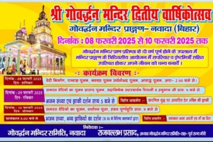 नवादा : दक्षिण भारतीय शैली से निर्मित अद्भुत वास्तुकला से परिपूर्ण गोवर्द्धन मंदिर नवादा के प्राणप्रतिष्ठा के दूसरे वार्षिकोत्सव पर…