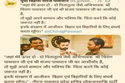 बांका : लोक जनशक्ति पार्टी (रामविलास) के बिहार प्रदेश सचिव नीरज पासवान इन दिनों अपने भावनात्मक सोशल मीडिया पोस्ट को…