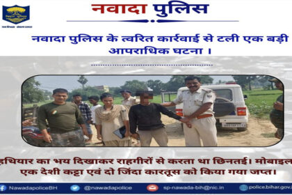 नवादा : जिले के वारिसलीगंज थाना क्षेत्र के विभिन्न क्षेत्रों में शस्त्र का भय दिखाकर लूटने वाले अपराधी को पुलिस…