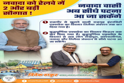 नवादा : सांसद विवेक ठाकुर के नवादा विकास का संकल्प धरातल पर दिखने लगा है। उनके प्रयासों से नवादा वासियों…