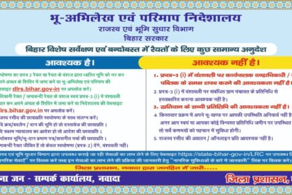 नवादा : रैयतों को भूमि सर्वे में आ रही परेशानी काे कम करने के लिए विभाग के द्वारा महत्वपूर्ण दिशा-निर्देश…