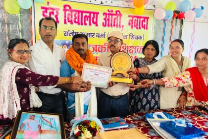 नवादा : जिले के सदर प्रखंड इंटर विद्यालय आंती में राजकीय शिक्षक सम्मान लेकर वापस लौटे विद्यालय के शारीरिक शिक्षक…
