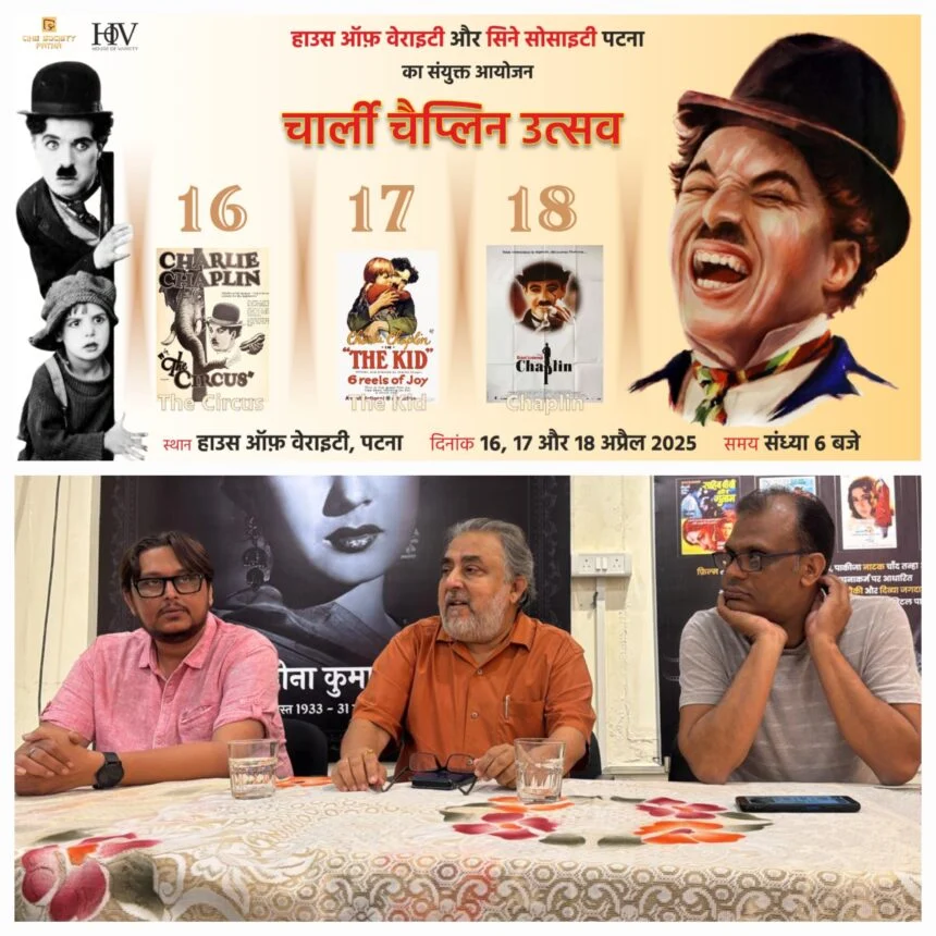 मंगलवार को एक प्रेस वार्ता के दौरान सिने सोसाइटी पटना के जनसंपर्क निदेशक डॉ. कुमार विमलेंदु सिंह ने बताया कि सिने सोसाइटी पटना ने 1989 में चैपलिन का शताब्दी वर्ष धूम धाम से पटना में मनाया था, 36 साल बाद फिर चैपलिन के जन्मदिन से ही सोसाइटी,एक बार फिर शहर के सांस्कृतिक पटल पर अपनी दमदार उपस्थिति दर्ज कराने जा रही है और इस बार शहर के प्रसिद्ध उद्यमी श्री सुमन कुमार, जो कि हाउस ऑफ वराइइटी के संस्थापक और मशहूर रीजेंट सिनेमा के मालिक हैं, पूरे मनोयोग से इस आयोजन को सफल बनाने में जुटे हैं। चैपलिन की याद में तीन दिन का उत्सव, एक प्रशंसनीय पहल है और इस से नई पीढ़ी को बहुत कुछ सीखने, समझने का अवसर भी मिलेगा और कला के रसास्वादन की क्षमता भी बढ़ेगी। तीनों दिन कार्यक्रम शाम 6 बजे से लेकर रात के 9 बजे तक चलेगा।