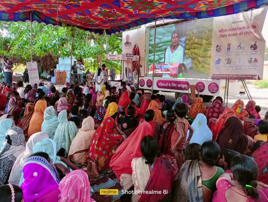 अरवल – सरकार द्वारा और हमारे समाज में महिला सशक्तिकरण के अनेक प्रयास भी किये जा रहे है जो की महिलाओं की वर्तमान स्थिति को सुधारने के लिए काफी महत्वपूर्ण है। इसी कड़ी में बिहार सरकार के महिला सशक्तिकरण कार्यक्रम के अंतर्गत “महिला संवाद कार्यक्रम” में महिलाओं को योजना से हुए लाभों की अपनी सफलता की कहानी बयां कर रही हैं  यह कार्यक्रम केवल महिलाओं के सशक्तिकरण तक सीमित नहीं है, बल्कि गाँव और समाज के समग्र विकास की रूपरेखा तय करने में भी सहायक हो रहा है। राज्य सरकार की योजनाओं से लाभान्वित महिलाओं ने इस कार्यक्रम में अपने जीवन में आए सकारात्मक बदलावों को साझा किया।
