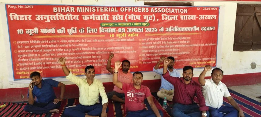 अरवल – बिहार अनुसचिवीय कर्मचारी संघ, जिला इकाई अरवल की अनिश्चितकालीन हड़ताल बुधवार को लगातार छब्बीसवें दिन भी जारी रही। सदर प्रखंड परिसर अरवल में कर्मियों ने मजबूती से डटे रहकर सरकार के खिलाफ आवाज बुलंद की।