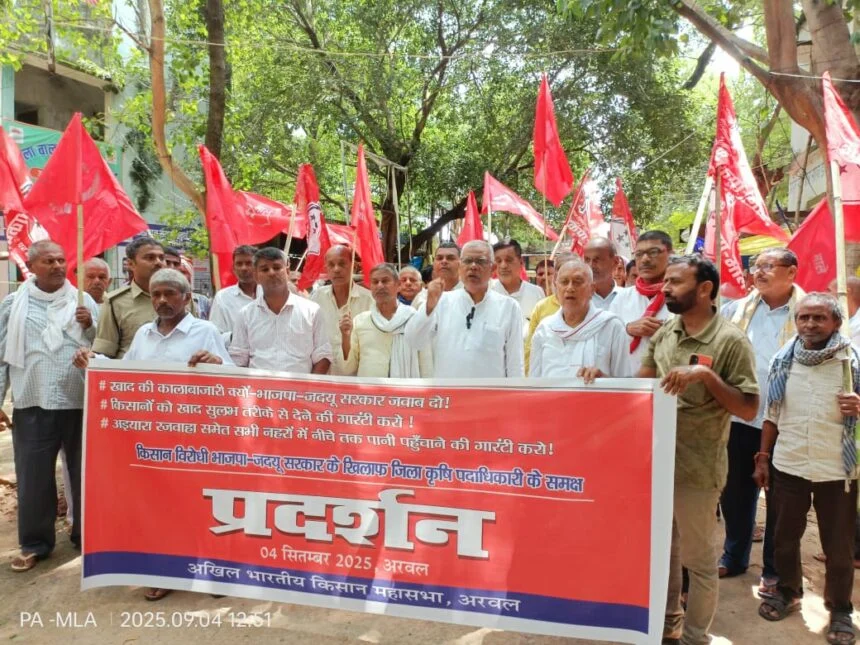 अरवल – खाद की कालाबाजारी और खाद की किल्लत को लेकर अखिल भारतीय किसान महासभा ने जिला कृषि पदाधिकारी का घेराव किया। इस अवसर पर किसानों को संबोधित करते हुए अरवल विधायक महानंद सिंह ने कहा कि बिहार के किसान खाद के लिए परेशान है।इस पर एक शब्द नहीं बोल रही हैं सरकार। सरकार ने बिचौलियों और जमाखोरी करने वाले को खाद स्टोर करके और महंगे दाम पर बेचने के लिए छूट दे रखी है चार से पांच सौ रुपया तक किसानों से पैसा वसूला जा रहा है।