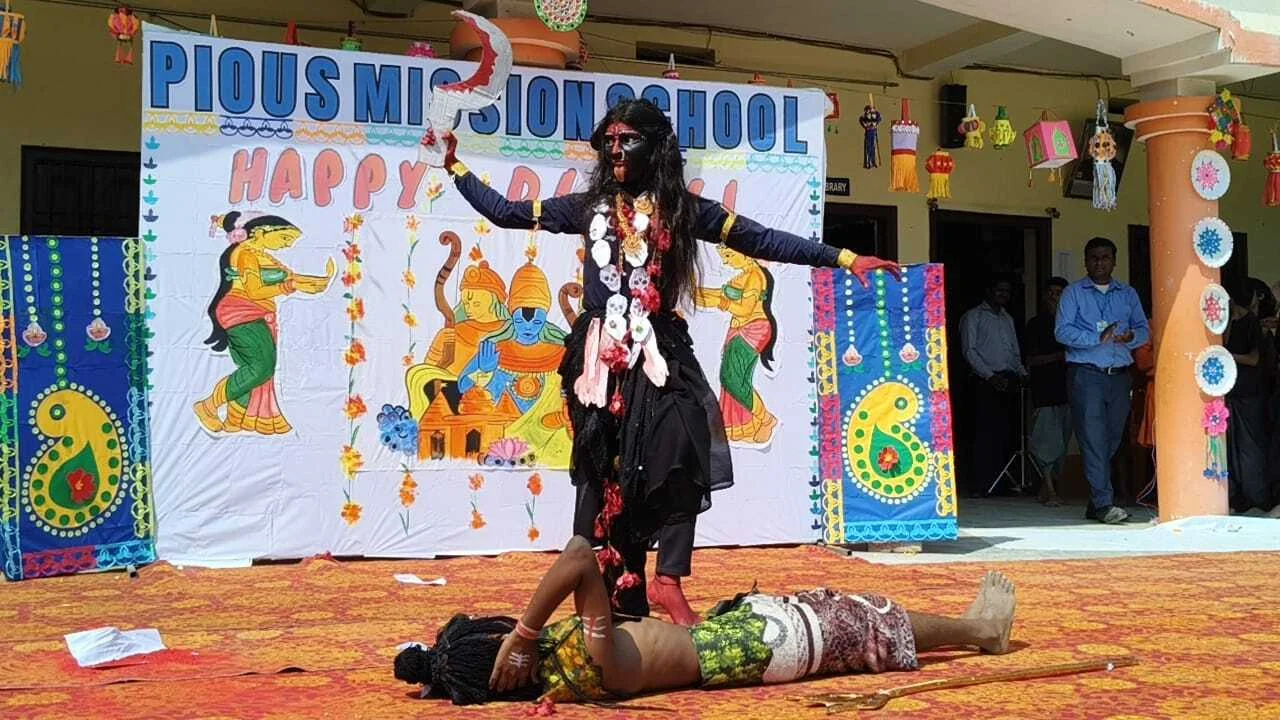 इस नाट्य के माध्यम से दिखाया गया कि रावण चाहे जितना भी शक्तिशाली था, लेकिन सत्य के सामने उसकी भी पराजय हुई। इसलिए रावण वध को प्रत्येक वर्ष मनाया जाता है, ताकि लोगों के यह हमेशा याद रहे की “जीत हमेशा सच्चाई की ही होती है’ साथ ही माता काली के रूप में रक्तबीज के वध को भी दर्शाया गया। वर्ग नवम् की छात्रा मुस्कान ने माता काली के स्वरूप को अपने अभिनय बल पर साक्षात् दर्शन करा दिया।
