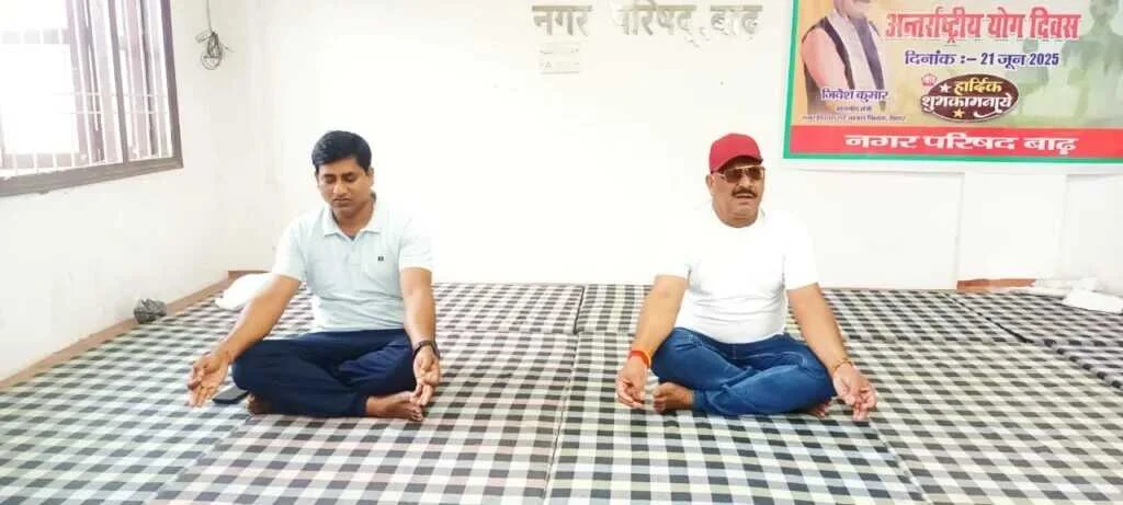 बाढ़ : अंतरराष्ट्रीय योग दिवस के अवसर पर बाढ़ नगर परिषद के सभा कक्ष में कार्यक्रम का आयोजन किया गया। इस मौके पर नगर परिषद के अध्यक्ष संजय कुमार उर्फ गाय माता के नेतृत्व में कई पार्षदों सहित नगर परिषदकर्मियों ने योगाभ्यास किया। चेयरमैन गाय माता ने योगाभ्यास के माध्यम से नगरवासियों को स्वस्थ्य और निरोग जीवन यापन का संदेश दिया। योग दिवस के अवसर पर काफी देर तक योग कार्यक्रम में कई पार्षदों के अलावे नगर परिषदकर्मियों ने भाग लिया।
