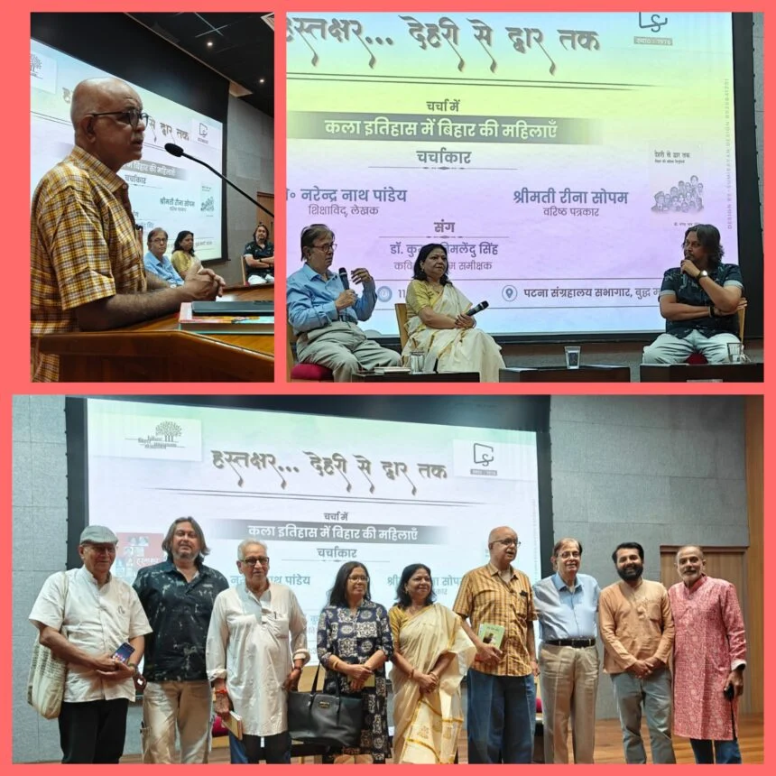 उक्त बातें रविवार को बिहार संग्रहालय और सिने सोसाइटी पटना के संयुक्त कार्यक्रम ‘हस्ताक्षर… देहरी से द्वार तक’ में वक्ताओं ने कहीं। पटना संग्रहालय के सभागार में आयोजित इस कार्यक्रम में प्रसिद्ध लेखक प्रो. नरेंद्र नाथ पांडे की पुस्तक देहरी से द्वार तक तथा वरिष्ठ पत्रकार रीना सोपम की पुस्तक हस्ताक्षर पर केंद्रित संयुक्त परिचर्चा के दौरान प्रो. पांडेय ने बिहार की दूसरी महिला चिकित्सक मारी एड्रस से लेकर वीणा पाणी घोष तक के बारे में बताया। कुल 13 महिला विभूतियों की चर्चा इनकी पुस्तक में है। इन महिलाओं के बारे में जानकारी आकाशवाणी पटना के रेडियो रूपक के लिए किया गया था, जिसे बाद में पुस्तक का स्वरूप दिया गया।