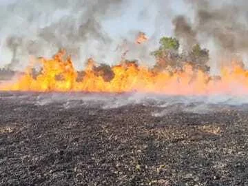 बिजली की चिंगारी ने ढाया कहर, दर्जनों किसानों की गेहूं की फसल जलकर राख