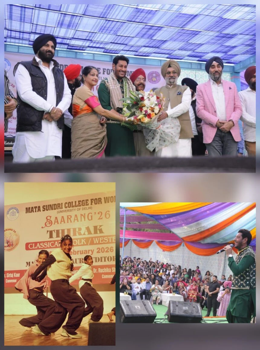 नई दिल्ली: दिल्ली विश्वविद्यालय से संबद्ध माता सुंदरी महिला महाविद्यालय में 18–19 फरवरी 2026 को वार्षिक सांस्कृतिक उत्सव ‘सारंग 2026’ का सफल एवं गरिमामय आयोजन किया गया। दो दिवसीय उत्सव में दिल्ली–एनसीआर के विभिन्न महाविद्यालयों से लगभग 700 विद्यार्थियों ने उत्साहपूर्ण सहभागिता दर्ज कराई, जिससे महाविद्यालय प्रांगण रचनात्मक अभिव्यक्ति, सांस्कृतिक सौहार्द एवं सहयोग की जीवंत ऊर्जा से आलोकित हो उठा। इस वर्ष उत्सव का केंद्रीय प्रतिपाद्य “Reflections: Roots and Rhythm (प्रतिबिंब: जड़ें और लय)” रहा, जिसने सांस्कृतिक विरासत के सम्मान और समकालीन सृजनशीलता के जीवंत संगम को सारगर्भित रूप में अभिव्यक्त किया। कार्यक्रम का शुभारंभ मंगलाचरण एवं दीप प्रज्वलन के साथ हुआ। उद्घाटन सत्र की अध्यक्षता महाविद्यालय की प्राचार्य प्रो. हरप्रीत कौर ने की। अपने उद्बोधन में उन्होंने जीवन के विविध क्षेत्रों में गरिमा, आत्मविश्वास एवं सफलता के लिए नैतिक एवं मानवीय मूल्यों की अनिवार्यता पर प्रकाश डाला। अवसर पर प्राध्यापकगण, महाविद्यालय परिवार के सदस्य, विद्यार्थी तथा विशिष्ट अतिथि एवं गणमान्य व्यक्ति उपस्थित रहे, जिनमें प्रो. अमिता देव, सरदार जगदीप सिंह काहलो, सरदार पृथीपाल सिंह, सरदार कुलबीर सिंह, सरदार रवैल सिंह, सरदार रजिंदर सिंह, श्री राजीव गर्ग एवं डॉ. मनिंदर कौर विशेष रूप से उल्लेखनीय हैं।