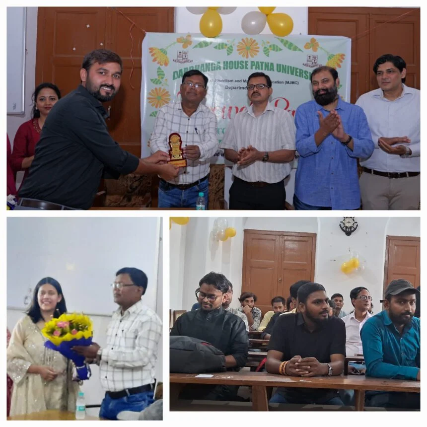 एमजेएमसी की समन्यवयक डॉ. शिप्रा शर्मा ने कहा कि पत्रकारिता के पाठ्यक्रम से मीडिया जगत को प्रतिभावान मानव संसाधन प्राप्त हुए हैं। फेयरवेल समारोह शिक्षा के अंत का परिचायक नहीं है, बल्कि यह आपकी शैक्षिक यात्रा का पड़ाव तथा पेशेवर यात्रा के आरंभ का बिंदु है। मीडिया शिक्षक डॉ. गौतम कुमार ने कहा कि बिहार का शायद ही कोई मीडिया हाउस होगा, जहां पटना वि.वि. के छात्र पत्रकार के रूप में सेवा नहीं दे रहा हो। उन्होंने पत्रकारिता के पूर्व छात्रों की उपलब्धियां भी साझा कीं। फेयरवेल समारोह में सेकेंड सेमेस्टर के विद्यार्थियों ने चतुर्थ सेमेस्टर के विद्यार्थियों को विदाई दी। इस अवसर पर म्यूजिकल चेयर, फिल्म क्विज, कविताई आदि का भी आयोजन हुआ। निदेशक डॉ. विजय कुमार ने चतुर्थ सेमेस्टर के सभी विद्यार्थियों को स्मृतिचिन्ह देकर आशीर्वाद दिया। इस अवसर पर हिंदी विभाग के डॉ. उत्तम कुमार नोनिया, पटना कॉलेज के डॉ. राधेश्याम, मीडिया शिक्षक मुद्दसिर सिद्दिकी, प्रशांत रंजन समेत दो सेमेस्टर के छात्र-छात्राएं उपस्थित रहे।