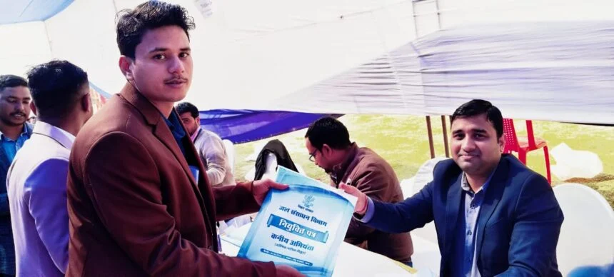 नवादा : जिले के अकबरपुर प्रखण्ड भाजपा के पूर्व प्रखंड अध्यक्ष अजय कुमार भोला के भतीजे अमित कुमार उर्फ गोलू ने जल संसाधन विभाग के कनीय अभियंता पद पर योगदान दिया है। उन्होंने बताया कि 2020 में परीक्षा दिया था। उसके बाद 2025 में पटना में मुख्यमंत्री नीतीश कुमार ने नियुक्ति पत्र दिया। बता दें अकबरपुर बाजार में तेली समाज में पहली बार जेई के पद पर योगदान देने वाला गोलू पहला युवक है।उनके जेई बनने पर बधाई देने वालों का तांता लगा हुआ है।