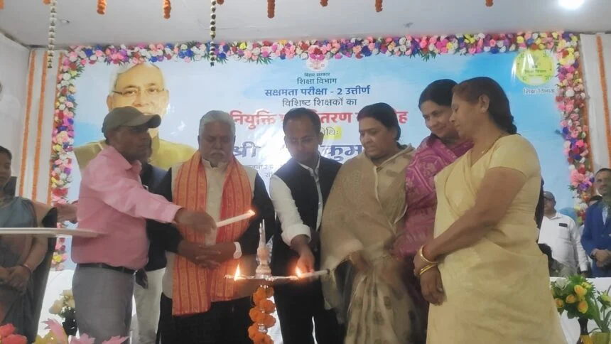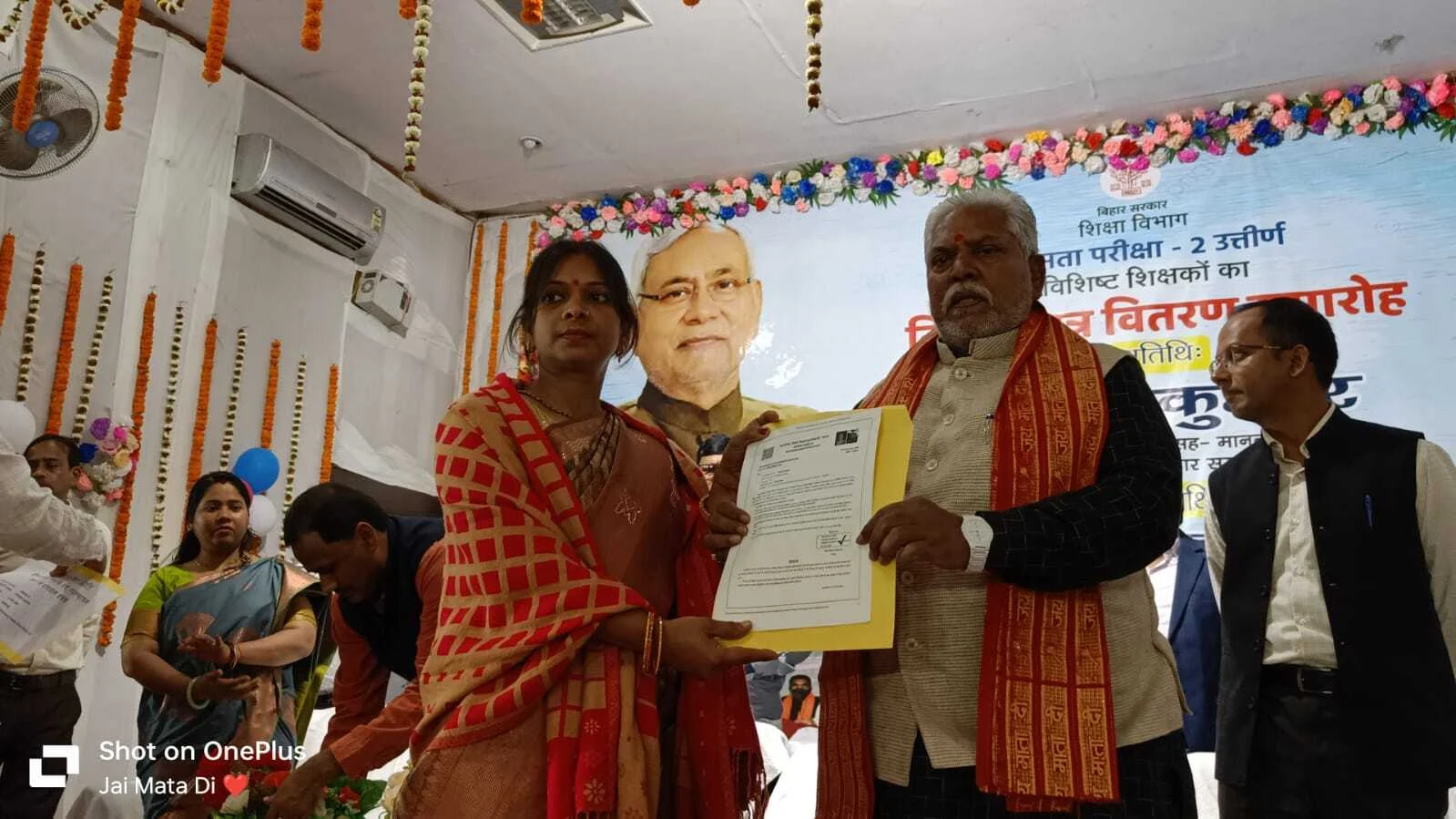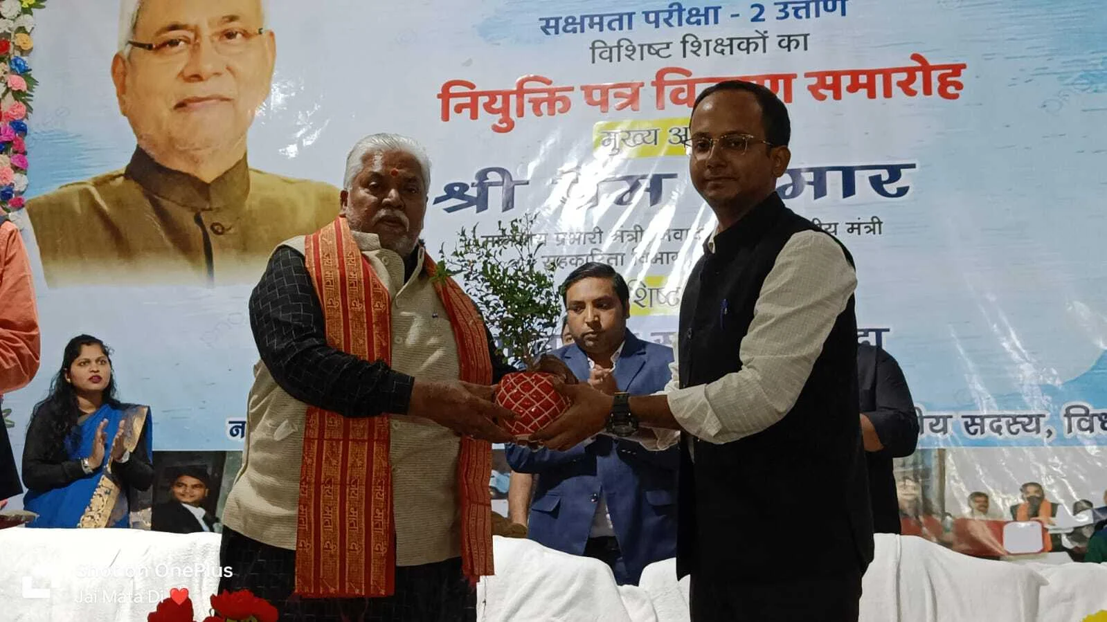माननीय मंत्री के द्वारा सोनम कुमारी, अनुराधा कुमारी, रिना कुमारी, रेणुका शर्मा, फिरदौस तबस्सुम, रामाकान्त सिंहा एवं अन्य शिक्षकों को नियुक्ति पत्र दिया गया एवं अंत में पांच दिव्यांगजन शिक्षक को भी उन्होंने खुद जाकर उनके हाथ में नियुक्ति पत्र दिया। उन्होंने सभी विशिष्ट शिक्षकों को हार्दिक बधाई एवं शुभकामनाएं दी। साथ ही जिला पदाधिकारी द्वारा बरखा रानी, ब्रजेश कुमार आदि को नियुक्ति पत्र दिया गया इसके अतिरिक्त जनप्रतिनिधियों एवं जिला स्तरीय पदाधिकारियों द्वारा भी शिक्षकों को नियुक्ति पत्र दिया गया।