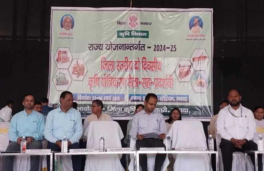 नवादा : जिला पदाधिकारी, श्री रवि प्रकाश ने हरिश्चन्द्र स्टेडियम में जिला स्तरीय दो दिवसीय कृषि यांत्रिकरण मेला-सह-प्रदर्शनी का फीता काटकर एवं दीप प्रज्वलित कर उद्घाटन किया। जिलाधिकारी ने कहा कि कृषि के क्षेत्र में प्रगति के लिए आधुनिक तकनीकों और यंत्रों का उपयोग आवश्यक है। उन्होंने किसानों को सरकारी योजनाओं का अधिक से अधिक लाभ उठाने को कहा। उन्होंने कहा कि इस कार्यक्रम का मुख्य उद्देश्य किसानों को आधुनिक कृषि यंत्रों एवं तकनीकों की जानकारी देना, उनकी उत्पादकता बढ़ाना और कृषि से संबंधित विभिन्न सरकारी योजनाओं के बारे में जागरूक करना है।