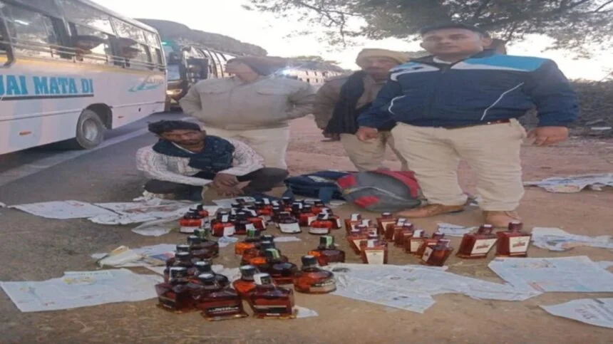 वहीं ओम श्री बस संख्या डब्लूबी 41के1567 पर सवार कोडरमा के रूपेश कुमार को 375 एमएल वाले एक बोतल ऑफिसर चॉइस नामक विदेशी शराब एवं कलकत्ता के पिंटू शर्मा को 750 एमएल वाले एक बोतल मेक डवेल विदेशी शराब के साथ गिरफ्तार किया। दूसरी ओर जय माता दी बस संख्या बीआर 27पी2121 पर सवार जिले के नारदीगंज थाना क्षेत्र के बड़ेसरा गांव निवासी गोरेलाल यादव के पुत्र सुमन कुमार को 53 बोतल विदेशी शराब के साथ गिरफ्तार किया।