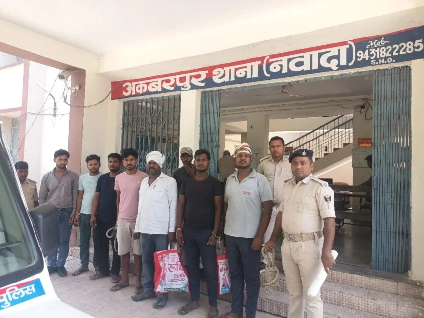 नवादा :अकबरपुर पुलिस ने अलग-अलग स्थानों पर छापामारी कर मारपीट समेत मद्य निषेध के सात आरोपी को गिरफ्तार कर लिया। गिरफ्तार आरोपियों को सामुदायिक स्वास्थ्य केंद्र में स्वास्थ्य जांच के उपरांत न्यायिक हिरासत में भेज दिया। थानाध्यक्ष संजीत राम ने बताया कि अकबरपुर थाना कांड संख्या 218 /25 दिनांक 1/5/25 के प्राथमिक अभियुक्त धर्मवीर सिंह व करमवीर सिंह दोनों पिता अजय सिंह ग्राम फतेहपुर थाना अकबरपुर जिला नवादा को गिरफ्तार कर माननीय न्यायालय के समक्ष को उपस्थापन हेतु भेजा गया।