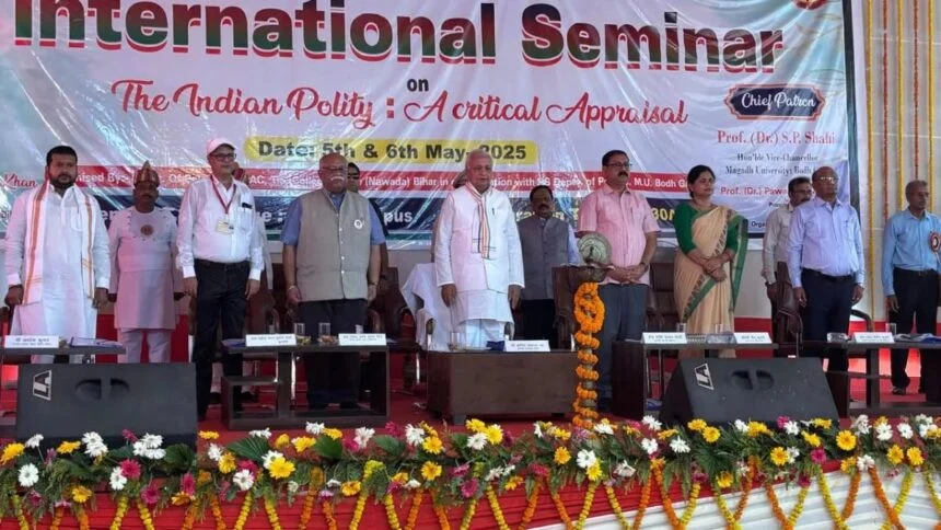 ए क्रिटिकल अप्रेजल विषय पर सेमिनार का आयोजन किया गया है। इस दौरान गवर्नर ने पहलगाम में हुए आतंकी हमले को दुखदायी बताते हुए प्रभावी कदम उठाने की जरूरत पर जोर देने के साथ इस दिशा में कार्रवाई होने का विश्वास भी जताया। इसके अलावा उन्होंने रामायण, महाभारत के पात्रों और श्लोक सुनाकर सेमिनार में मौजूद लोगों को धर्म की सही परिभाषा समझाई। उन्होंने लोकतंत्र को शासन के सभी तरीकों में श्रेष्ठ बताया। बता दें कि सेमिनार में मगध विश्वविद्यालय के कुलपति समेत कई दूसरे यूनिवर्सिटी से कुलपति, वरीय अधिकारी मौजूद थे।