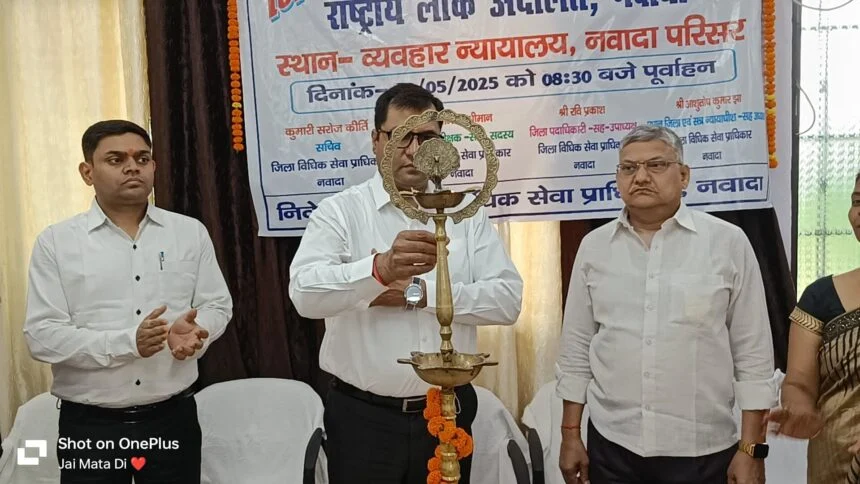नवादा : व्यवहार न्यायालय परिसर में शनिवार को राष्ट्रीय लोक अदालत का आयोजन हुआ। जिला विधिक सेवा प्राधिकार के अध्यक्ष सह प्रधान जिला जज आशुतोष कुमार झा, न्यायिक अधिकारी उपेंद्र कुमार, प्राधिकार के सचिव कुमारी सरोज कृति, धीरेंद्र कुमार पांडे, अपर समाहर्ता चंद्रशेखर आजाद ने संयुक्त रूप से दीप प्रज्जवलित कर अदालत की कारवाई का शुभारंभ किया। इस अवसर पर अध्यक्ष आशुतोष कुमार झा ने कहा कि जिला विधिक सेवा प्राधिकार के कार्य में जिला प्रशासन के द्वारा सहयोग मिल रहा है। लोक अदालत पक्षकारों के बीच के मतभेद को दूर करने एवं उत्पन्न विवाद को समाप्त करने में सहयोग करता है। न्याय आवेदक के द्वार तक पहुंचाने की यह पहल है। यहां से लोग प्रसन्न होकर लौटें पूरा प्रयास किया जाता है।