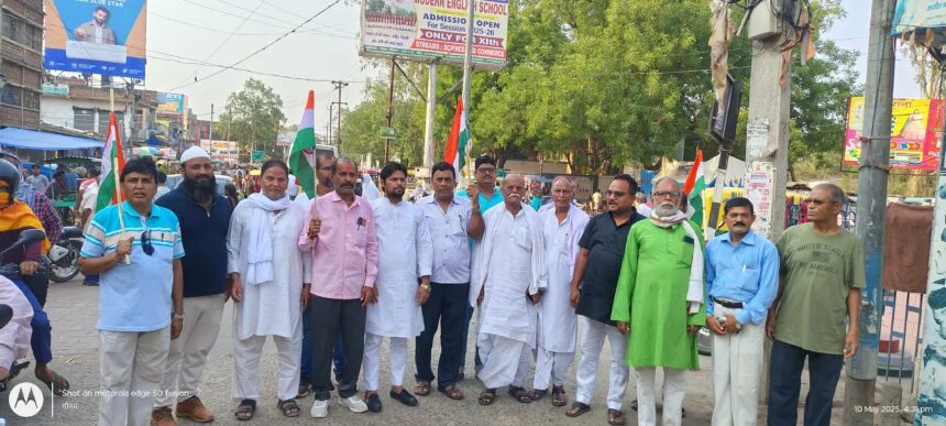 नवादा : जिला कांग्रेस अध्यक्ष सतीश कुमार उर्फ़ मंटन सिंह के निदेश पर जिला कांग्रेस कार्यालय से भगत सिंह चौक ,नगर थाना एवं अन्य तिरंगा यात्रा निकाला गया।हमारे भारत के सैनिक के सम्मान मे ये तिरंगा यात्रा भब्य कार्यक्रम का रूप लेते हुये नगर थाना के पास समाप्त किया गया। इस अवसर पर बंगाली पासवान प्रतिनिधि बिहार प्रदेश, अंजनी कुमार उर्फ़ पप्पू ने संयुक्त बयान मे कहा कि भारत के सैनिको ने आज पाकिस्तान क़ो सबक सिखाया