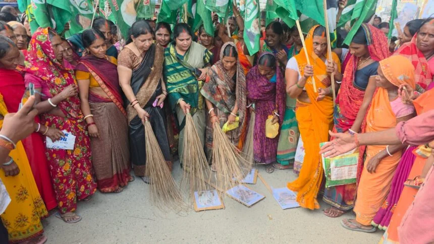 नवादा के बाद रजौली में भी राजद की महिलाएं हुई लाल, पूर्वमंत्री राजबल्लभ प्रसाद का फूंका पुतला