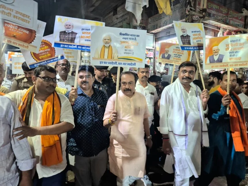 नवादा : सांसद विवेक ठाकुर ने शहर के मुख्य मार्गों पर पैदल भ्रमण अपने सैकड़ों समर्थकों के साथ कर अद्भुत मिसाल पेश किया। व्यापारियों से मिलकर संवाद स्थापित कर जीएसटी रिफार्म के महत्व और उसके लाभों पर चर्चा की। विवेक ठाकुर ने कहा कि जीएसटी से कर व्यवस्था सरल हुई है और व्यापारियों को पारदर्शिता के साथ बेहतर अवसर मिल रहे हैं। सुधार “मेक इन इंडिया ” पहल का एक शक्तिशाली समर्थन है और ‘आत्मनिर्भर भारत’ के हमारे मिशन के लिए एक शक्तिशाली उत्प्रेरक है। घरेलू निर्माण के लिए केंद्रीय और अत्यधिक श्रम-गहन वस्तुओं की एक विस्तृत श्रृंखला पर दरों में महत्वपूर्ण कमी की गई है।