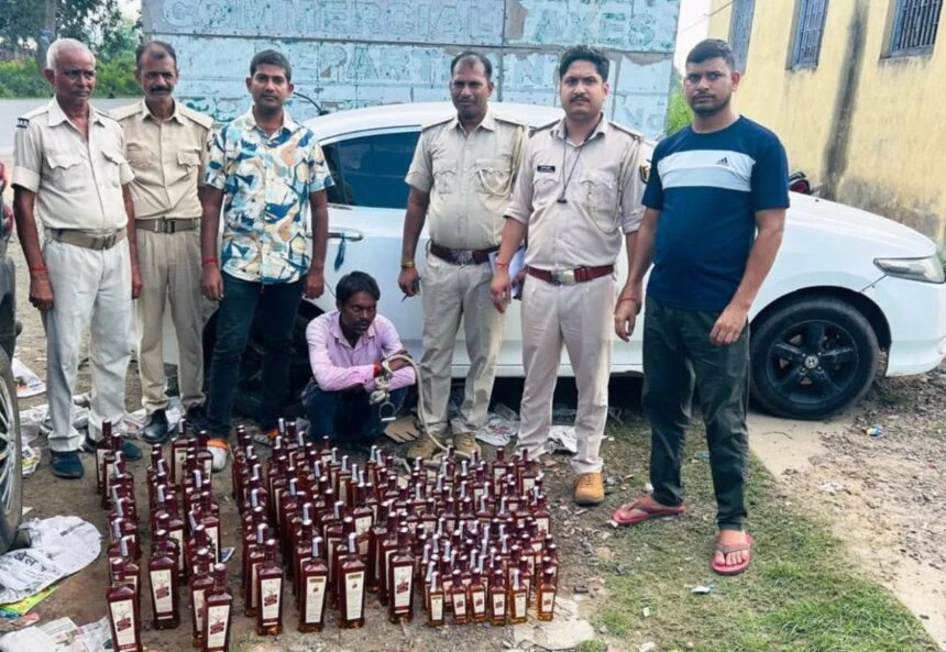 उत्पाद अधीक्षक अरुण कुमार मिश्र ने बताया कि शराबबंदी कानून को अक्षरसः पालन करने एवं दशहरा पूजा को लेकर जांच चौकी पर उत्पाद पुलिस के द्वारा सघन वाहन जांच किया जा रहा है, जिसका नेतृत्व उत्पाद इंस्पेक्टर अमृत कुमार गुप्ता कर रहे हैं। शुक्रवार की सुबह झारखंड से बिहार शरीफ जा रहे होंडा सिटी नामक लग्जरी कार को जांच के लिए रोका गया। जांच के क्रम में कार के सीट एवं डैशबोर्ड में बने गुप्त तहखानों से रॉयल स्टेग 750 एमएल का 65 बोतल, 375 एमएल का 48 बोतल एवं 180 एमएल का 40 बोतल शराब बरामद किया गया है। वहीं दूसरी ओर विभिन्न दो यात्री बसों में सवार तीन लोगों के पास से विदेशी शराब, बियर एवं चुलाई शराब बरामद किया गया है।
