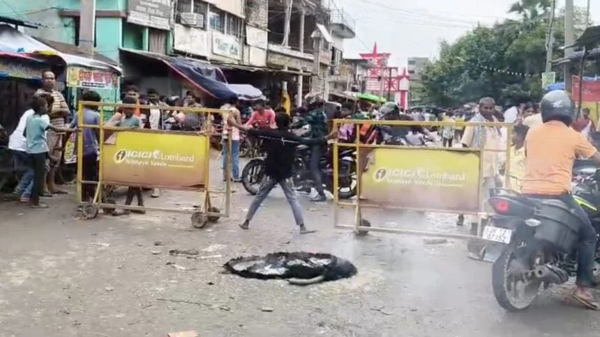 नवादा : जिले के बिहार -झारखंड सीमा पर गोविंदपुर प्रखंड मुख्यालय बाजार में पुलिस का चेहरा उस समय सामने आया जब मेरा देखने आते युवक को इतना दौड़ाया कि उसे तालाब में कूदने पर मजबूर होना पड़ा। सुबह शव बरामद होते ही बवाल मच गया। मृतक विशनपुर गांव का भोला राजवंशी का बेटा 18 वर्षीय सूरज कुमार बताया गया है।