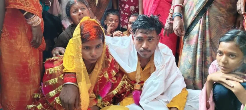 गांव के शिव मंदिर में शादी की तैयारी शुरू कर दी गई। पूजा की थाली सजी, फूल मंगवाए गए और स्थानीय पंडित को बुलाकर विधि-विधान से दोनों की शादी संपन्न कराई गई। गांव के लोग बाराती बन गए, महिलाएं मंगलगीत गाने लगीं और बच्चे फूल बरसाने लगे। गांव के लोगों ने इस अनोखी शादी को “प्यार की जीत” बताया।बुजुर्ग बोले — “अब जमाना बदल गया है, प्यार को मंजिल मिलनी ही चाहिए थी।” प्रेम विवाह पूरे इलाके में चर्चा का विषय बना हुआ है — ना लगन, ना बारात, पर प्यार की जीत सबसे खास!