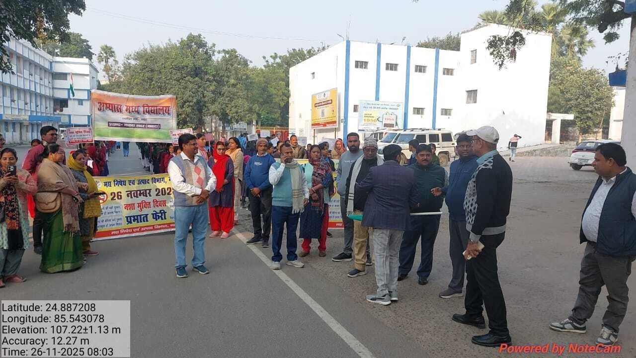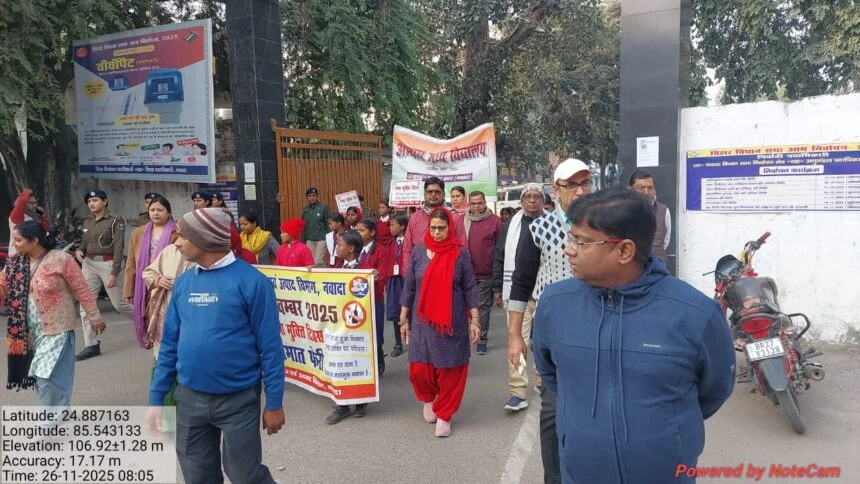 नवादा : नशा मुक्ति दिवस के अवसर पर अभ्यास मध्य विद्यालय की छात्र-छात्राओं एवं शिक्षकों द्वारा जागरूकता हेतु भव्य प्रभात फेरी निकाली गई। प्रभात फेरी का उद्देश्य आमजन को नशा के दुष्प्रभावों से अवगत कराना एवं समाज में सकारात्मक संदेश प्रसारित करना था। प्रभात फेरी के दौरान विद्यार्थियों ने प्रेरणादायक नारों के माध्यम से लोगों को जागरूक किया। “नशा छोड़ें, जीवन संवारें” तथा “स्वस्थ परिवार, खुशहाल समाज” जैसे नारे विशेष रूप से आकर्षण का केंद्र रहे।