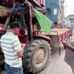 बालू लदे ट्रैक्टर ने दुकान में मारी टक्कर
