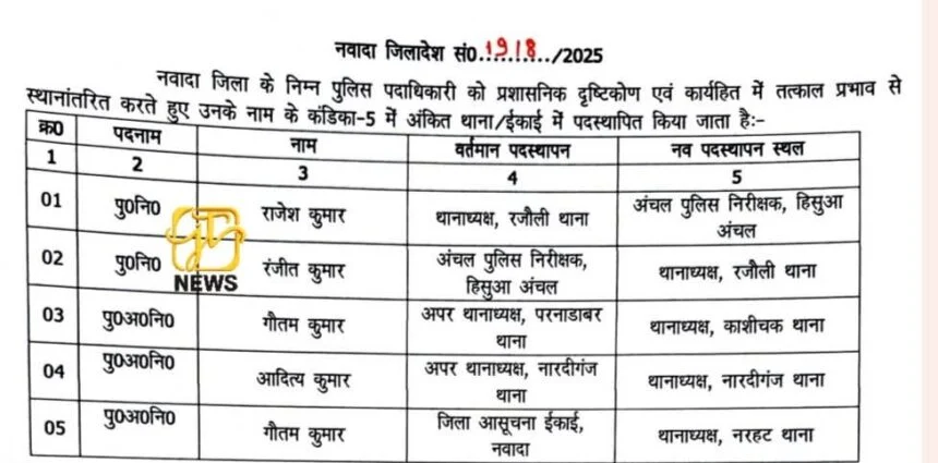 -स्थानांतरित किये गये रजौली थानाध्यक्ष