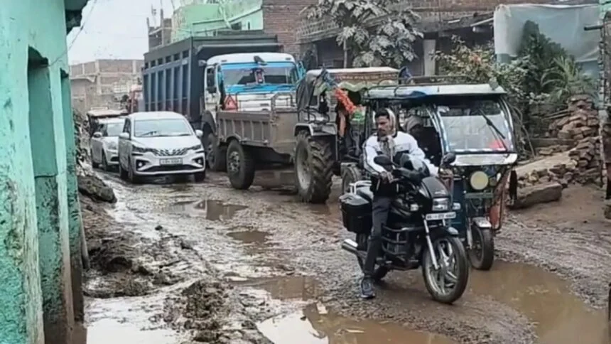 इसी संकीर्ण मार्ग पर सड़क किनारे बनी नालियां जगह-जगह टूट चुकी हैं, जिनका गंदा पानी बहकर सीधे सड़क पर आ रहा है, जिससे फिसलन और दुर्घटना का खतरा बढ़ गया है। समस्या यहीं खत्म नहीं होती। लेधा गांव के पास बालू घाट होने के कारण रोजाना दर्जनों भारी ट्रक और हाइवा वाहन बालू लोड कर इसी रास्ते से गुजरते हैं।