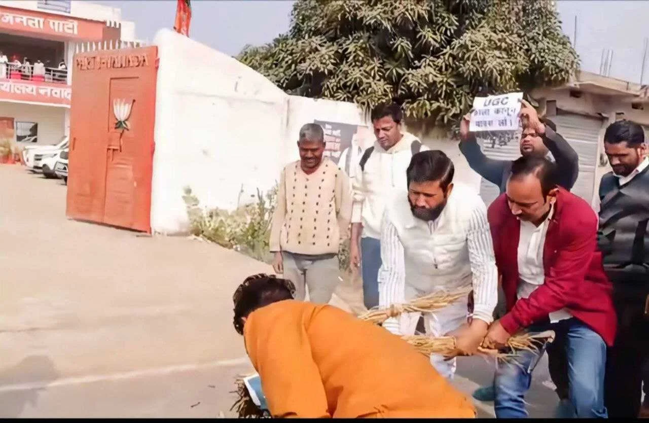 यूजीसी बिल के विरुद्ध युवाओं ने फूंका पीएम व गृहमंत्री का पुतला