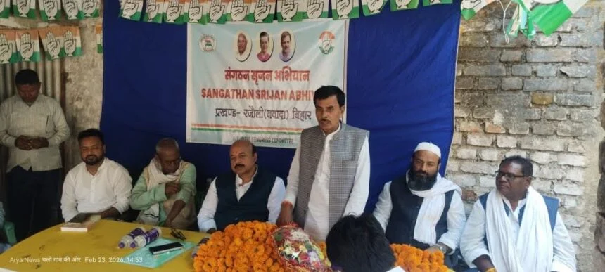 नवादा : अखिल भारतीय कांग्रेस कमिटी की ओर से चलाए जा रहे संगठन सृजन अभियान के तहत रजौली प्रखंड कांग्रेस कार्यालय में रामरतन गिरी की अध्यक्षता में बैठक आयोजित की गई। आयोजित बैठक में अखिल भारतीय कांग्रेस कमेटी की ओर से आए प्रभारी जयशंकर पाठक, अल्पसंख्यक जिलाध्यक्ष मो नौशाद खान पहुंचे। कांग्रेस के कार्यकर्ताओं ने आए हुए पार्टी अधिकारियों को बुके, फूल-माला एवं अंग वस्त्र देकर सम्मानित किया। प्रभारी ने कांग्रेस कार्यकर्ताओं से कहा कि इस समय पूरे भारत में पार्टी के संगठन सृजन अभियान चलाया जा रहा है।