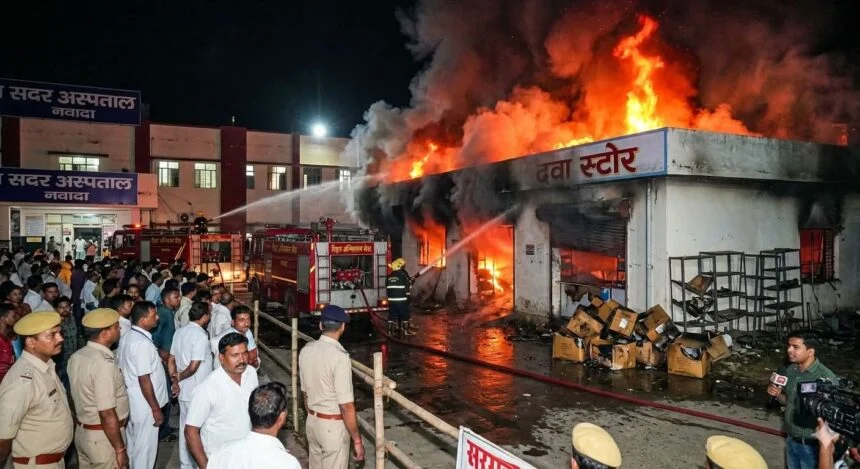नवादा सदर अस्पताल परिसर शुक्रवार की रात उस वक्त रणक्षेत्र में तब्दील हो गया, जब अस्पताल के मुख्य दवा स्टोर में भीषण आग लग गई। सिविल सर्जन कार्यालय के ठीक पीछे स्थित इस स्टोर रूम से उठी आग की लपटों ने न केवल लाखों रुपये की जीवन रक्षक दवाइयों और उपकरणों को राख कर दिया, बल्कि अस्पताल की ‘फायर सेफ्टी’ दावों की भी पोल खोलकर रख दी। गनीमत रही कि समय रहते बगल के सर्जिकल वार्ड से मरीजों को सुरक्षित निकाल लिया गया, वरना यह हादसा एक बड़ी मानवीय त्रासदी में बदल सकता था। अब सवाल यह है कि जिला अस्पताल जैसे संवेदनशील स्थान पर सुरक्षा के पुख्ता इंतजाम आखिर कागजों तक ही क्यों सीमित थे?