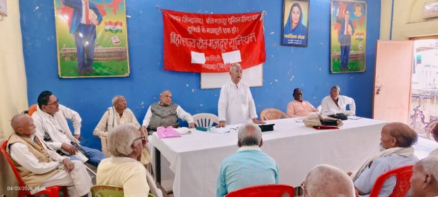 यूनियन के सदस्यता अभियान को द्रुत गति से तेज करने का आह्वान किया। उक्त विचार गोष्ठी व बैठक में कृष्णा नगर, हिसुआ, भट्टा जैसे गांवों में घटित दमन, उत्पीड़न, मॉबलींन्चिंग, हत्याएं आगजनी जैसे क्रूर अमानवीय घटनाओं का जिक्र व विरोध करते हुए इस पर पूर्णविराम लगाने के लिए एकता और संघर्ष पर जोर दिया गया।विचार गोष्ठी का शुभारम्भ शोक श्रद्धांजलि सत्र का आयोजन किया गया, जिसमें का. प्रमोद शर्मा, लखीसराय, का. निरंजन कुमार, समस्तीपुर, अखिलेश यादव, पथरा इंग्लिश, सुबोध सिंह,फरहेदा, दशरथ प्रसाद,शक्ति विधा, जगदीश प्रसाद यादव,पुनथर तथा मुनि सिंह,सगमा समेत देश एवं राज्य के तमाम शहीद व दिवंगत साथियों के लिए एक मिनट मौन रहकर शोक श्रद्धांजलि अर्पित की गई। मौके पर अशोक समदर्शी, उमाकांत अधिवक्ता, गोविन्द प्रसाद, राजेन्द्र प्रसाद, राजकुमार प्रसाद, ललन कुमार, सुभाष प्रसाद यादव, नुनु कुमार चौधरी,रामसरेख यादव, विजय नंदन सिंह, बासुदेव महतो तथा अंबिका राम आदि शामिल थे।