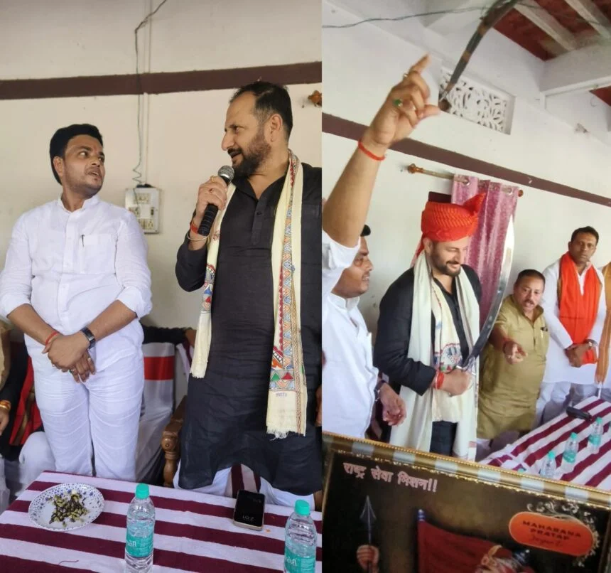 दरअसल, महाराणा प्रताप और भामा शाह समारोह में आने की निमंत्रण देने के लिए पीएचडी मंत्री नीरज कुमार बबलू अथमलगोला प्रखंड के करजान पंचायत पहुंचे थे। जहाँ, समाजसेवी घनश्याम सिंह मंटू ने पीएचडी मंत्री को पुष्पमाला, अंगवस्त्र, पगड़ी, महाराणा प्रताप की तैलचित्र एवं तलवार देकर सम्मानित किया गया। मौके पर भाजपा प्रदेश उपाध्यक्ष मनीष कुमार, करणी सेना जिलाध्यक्ष रणधीर सिंह, भरत सिंह, सुनील सिंह, मुन्ना सिंह, विजेंद्र प्रसाद सिंह, राजे सिंह, टिनोपाल सिंह, आशुतोष कुमार, मुखिया शिवदयाल सिंह नागा, भीम सिंह, शिवजी सिंह, राजीव कुमार सहित कई एनडीए कार्ययकर्ता सहित काफी संख्या में ग्रामीण मौजूद थे।