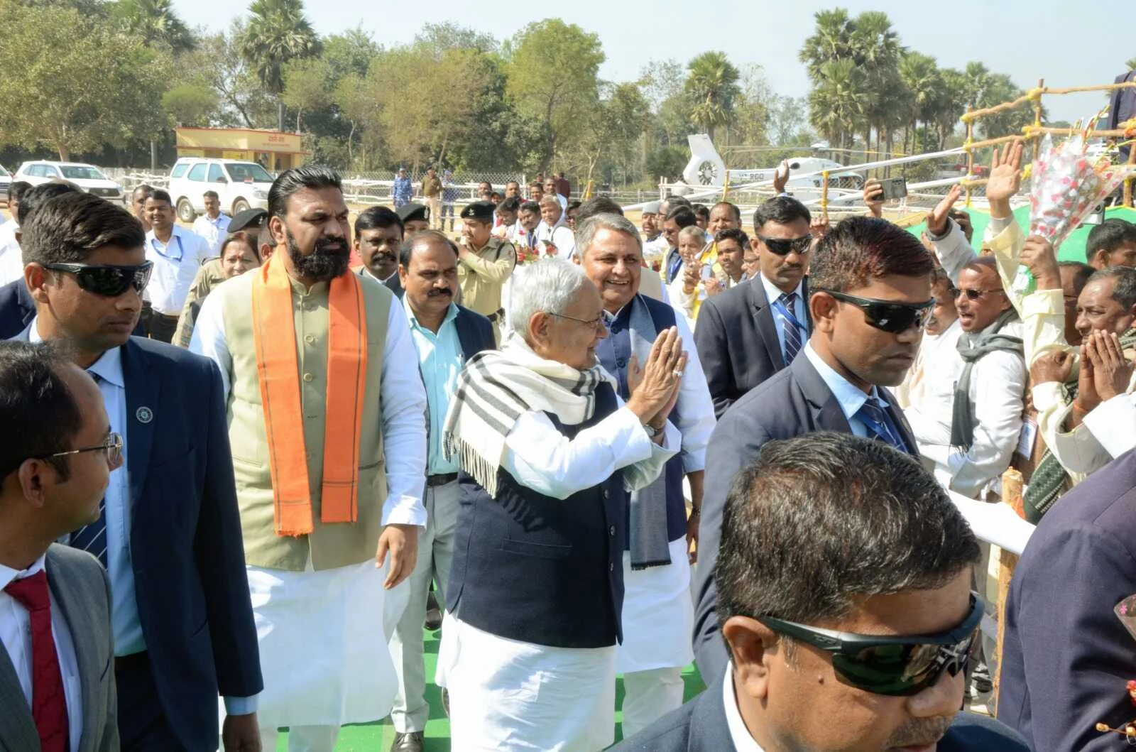 कार्यक्रम के दौरान ‌उपमुख्यमंत्री सम्राट चौधरी, जल संसाधन सह संसदीय कार्य मंत्री विजय कुमार चौधरी, पर्यावरण, वन एवं जलवायु परिवर्तन मंत्री सह जिले के प्रभारी मंत्री डॉ० प्रेम कुमार, सांसद विवेक ठाकुर, विधायक प्रकाश वीर, विधायक नीतू कुमारी, विधान पार्षद अशोक यादव एवं अन्य जनप्रतिनिधिगण, विकास आयुक्त प्रत्यय अमृत, मुख्यमंत्री के प्रधान सचिव डॉ० एस० सिद्धार्थ, अपर पुलिस महानिदेशक, मुख्यालय, कुंदन कृष्णन, पशु एवं मत्स्य संसाधन विभाग की अपर मुख्य सचिव डॉ० एन० विजया लक्ष्मी, लोक स्वास्थ्य अभियंत्रण विभाग के प्रधान सचिव पंकज कुमार, मुख्यमंत्री के विशेष कार्य पदाधिकारी श्री गोपाल सिंह, पथ निर्माण विभाग के सचिवबी० कार्तिकेय धनजी, मगध प्रमंडल के आयुक्त प्रेम सिंह मीणा, जीविका की अपर मुख्य कार्यपालक पदाधिकारी एवं मनरेगा आयुक्त अभिलाषा कुमारी शर्मा, मगध प्रक्षेत्र के पुलिस महानिरीक्षक क्षत्रनिल सिंह, नवादा के जिलाधिकारी रवि प्रकाश, पुलिस अधिक्षक अभिनव धीमान सहित अन्य वरीय अधिकारी एवं गणमान्य व्यक्ति उपस्थित थे।