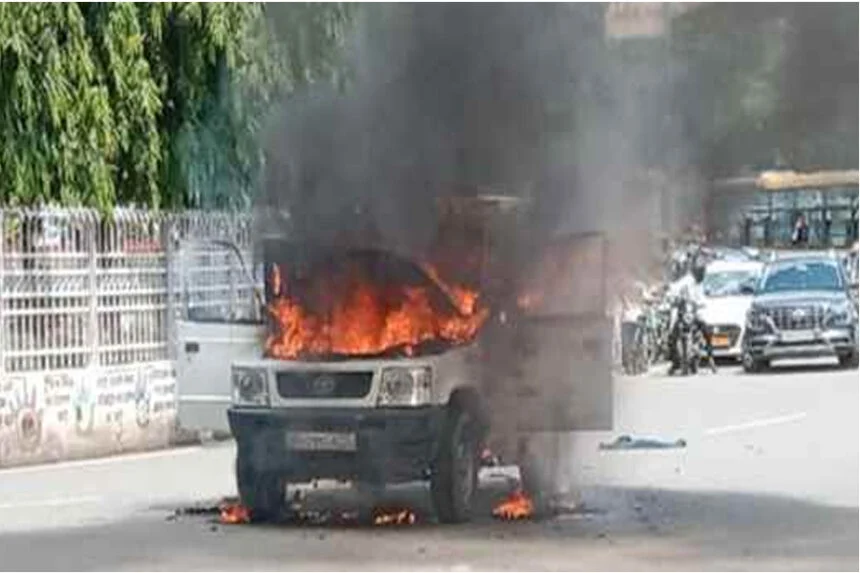 Patna : राजधानी पटना के कोतवाली थाना क्षेत्र के इनकम टैक्स चौराहा के पास पुलिस की टाटा सूमो विक्टा में अचानक से भीषण आग लग गई। घटना के बाद गाड़ी में सवार पुलिसकर्मियों ने किसी तरह से भागकर अपनी जान बचायी। सूचना के बाद दमकल की टीम ने मौके पर पहुंच कर भारी मशक्कत के बाद गाड़ी में लगी आग पर काबू पाया। हादसे में कोई हताहत नहीं हुआ। शॉर्ट सर्किट से आग लगने की संभावना जताई जा रही है।