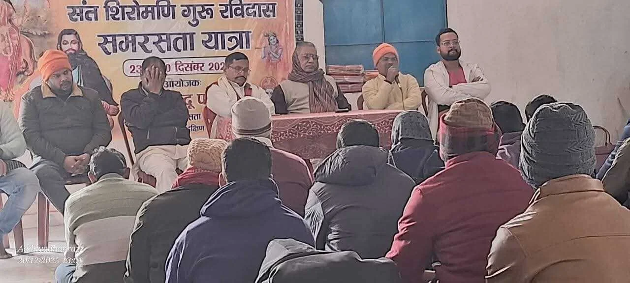 पटना। संत शिरोमणि गुरु रविदास समरसता यात्रा–2025 का समापन राजधानी पटना से सटे अतिप्राचीन बाढ़ अनुमंडल के चर्चित प्रखंड बेलछी में भव्य और उत्साहपूर्ण वातावरण में किया गया। विश्व हिंदू परिषद, दक्षिण बिहार प्रांत के तत्वावधान में आयोजित यह यात्रा 23 दिसंबर से प्रारंभ होकर 30 दिसंबर तक प्रांत के विभिन्न प्रखंडों से गुजरते हुए बेलछी प्रखंड के सकसोहरा बाजार पहुंची, जहां समापन सह भोज कार्यक्रम का आयोजन किया गया।