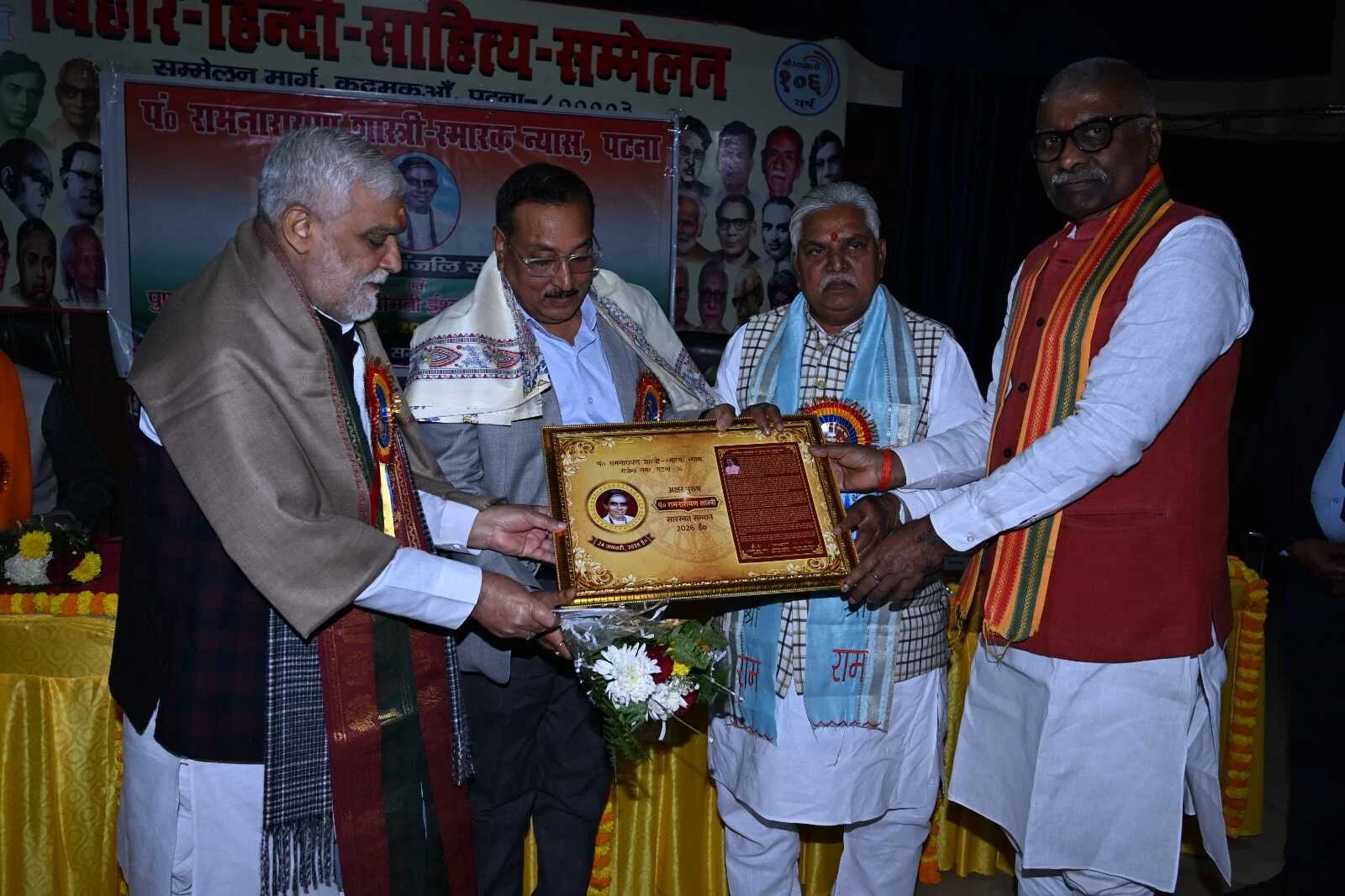 पटना,24 जनवरी। संस्कृत और प्राच्य-साहित्य के महान अध्येता और ऋषि-तुल्य साहित्य-साधक थे पं राम नारायण शास्त्री। वे एक महान हिन्दी सेवी ही नहीं एक महान चिंतक भी थे। उनके तपस्वी जीवन से हमें प्रेरणा मिलती है। उनकी पत्नी ईश्वरी देवी भी वेदों का ज्ञान रखने वाली विदुषी और गणितज्ञ थी। साहित्य, समाज और राजनीति की सेवा भी उन्होंने देश-सेवा के रूप में की। उनकी सरलता और विनम्रता अनुकरणीय थी। यह बातें शनिवार को बिहार हिन्दी साहित्य सम्मेलन में, पं राम नारायण शास्त्री स्मारक न्यास के तत्त्वावधान में आयोजित स्मृति-सह-सम्मान समारोह का उद्घाटन करते हुए, बिहार विधान सभा के अध्यक्ष प्रेम कुमार ने कही।