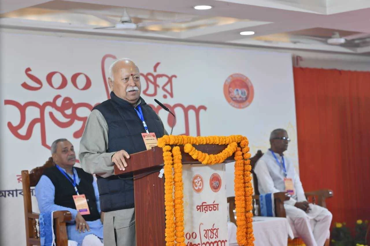 पटना/सिलीगुड़ी : संघ शताब्दी वर्ष के उपलक्ष्य में राष्ट्रीय स्वयंसेवक संघ के सरसंघचालक डॉ०मोहन भागवतजी ने सिलीगुड़ी स्थित उत्तर बंग मारवाड़ी भवन में आयोजित प्रबुद्ध नागरिक सम्मेलन को गत 19 दिसंबर को संबोधित किया।इस एक यह दिवसीय सम्मेलन संघ शताब्दी वर्ष के उपलक्ष्य़ में उत्तर बंग प्रांत द्वारा आयोजित किया गया था।“राष्ट्रीय स्वयंसेवक संघ के 100 वर्षों की यात्रा ” विषयक सम्मेलन में उत्तर बंगाल के आठ जिलों तथा पड़ोसी राज्य सिक्किम से आए समाज के विभिन्न वर्गों के सौ से अधिक प्रबुद्ध नागरिकों ने भाग लिया।