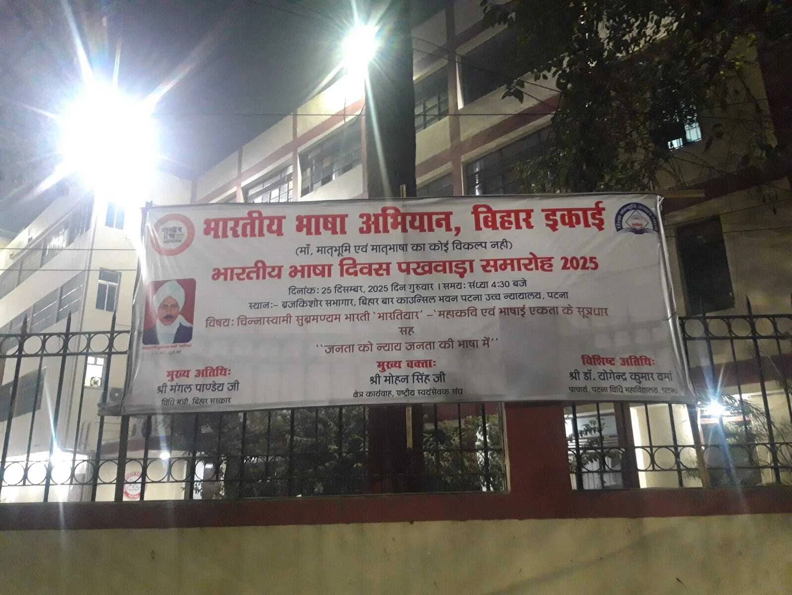 पटना : भारतीय भाषा दिवस पखवाड़ा के अवसर पर गुरुवार को पटना उच्च न्यायालय स्थित ब्रजकिशोर सभागार में एक विचार–गोष्ठी का आयोजन किया गया। कार्यक्रम का उद्देश्य भारतीय भाषाओं की महत्ता, मातृभाषा के प्रयोग तथा न्याय व्यवस्था को लोकभाषा से जोड़ने पर गंभीर विमर्श करना रहा। समारोह के संबोधन में बिहार सरकार के विधि मंत्री ने कहा कि मातृभाषा में कार्य करने और न्याय पाने का अधिकार मिले, तभी सार्थकता होगी इसके बिना कुछ भी संभव नहीं है।