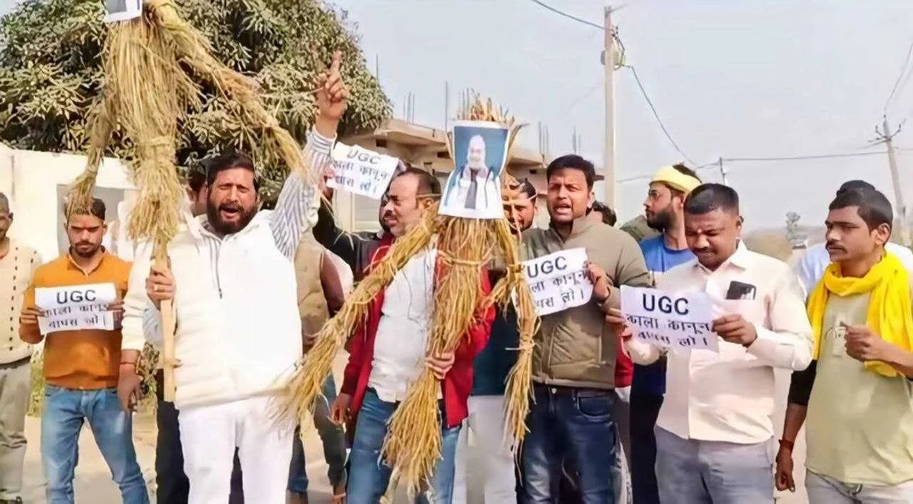यूजीसी बिल के विरुद्ध युवाओं ने फूंका पीएम व गृहमंत्री का पुतला