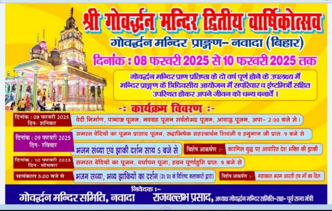 नवादा : दक्षिण भारतीय शैली से निर्मित अद्भुत वास्तुकला से परिपूर्ण गोवर्द्धन…